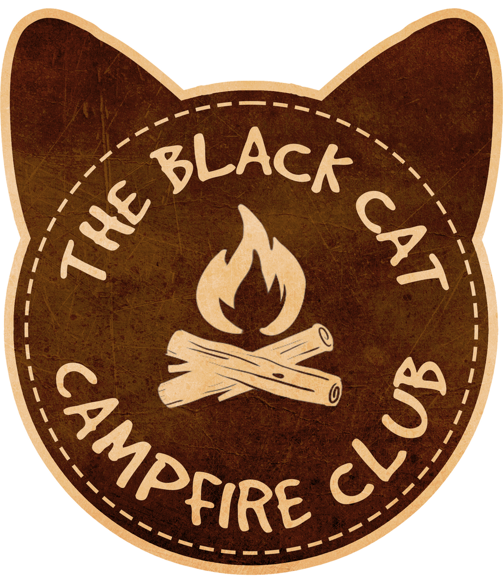 The Black Cat Campfire club is a collection of convention exclusive designs created by myself! It's a fictional nature club with black cats as the theme! I wanted to create a collection of designs expressing my low-key love for woodsy aesthetics and goofy little guys to give people a little respite from the high contrast art I'm normally known for. So take a look around and enjoy the little campsite I've created!
